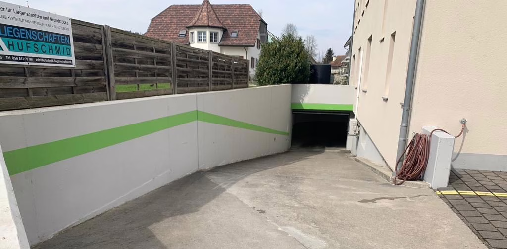 Nesselnbach – Tiefgarageneinstellplätze hell und einladend, mit grüner Markierung für sicheres parkieren